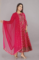 This kurta and dupatta set is curated for festive and party occasions, providing you with a versatile and stylish outfit that effortlessly transitions from celebrations to weddings. The attractive accents and intricate pattern make it a statement piece, allowing you to shine at any event. You can pair it with oxidised earrings and bangles for a complete festive look.